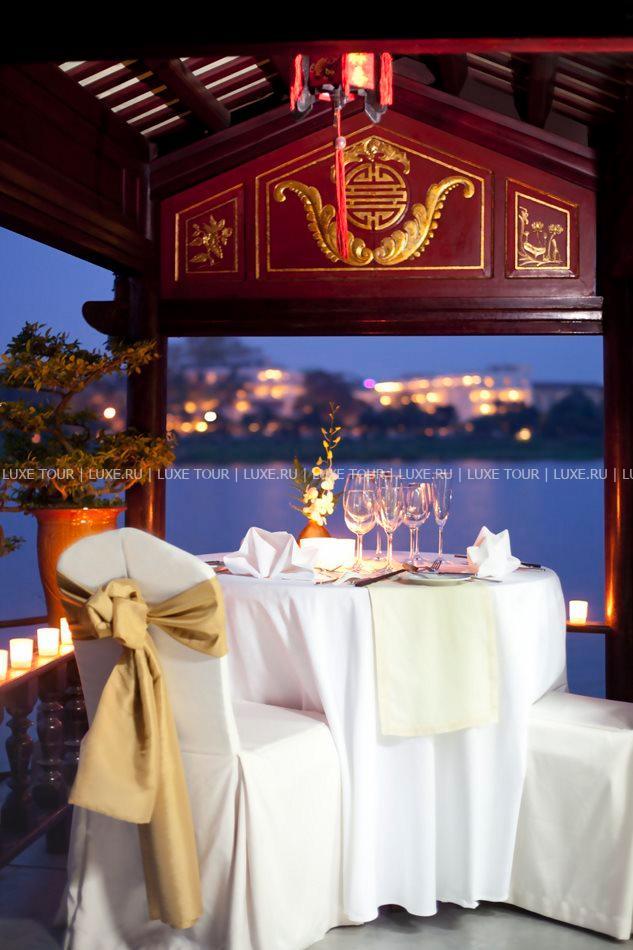 - Элегантный ресторан Le Parfum предлагает деликатесы вьетнамской и французской кухни, которыми можно насладиться на живописной террасе с видом на Ароматную реку и сад отеля.
