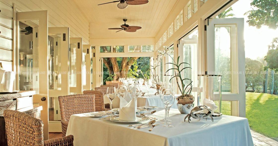 - Ресторан Plantation House с элегантным залом в колониальном стиле. приватной обеденной зоной на 16 человек и верандой с видом на тропический сад представляет изысканную кухню в концепции «с фермы на стол» и богатую карту вин.