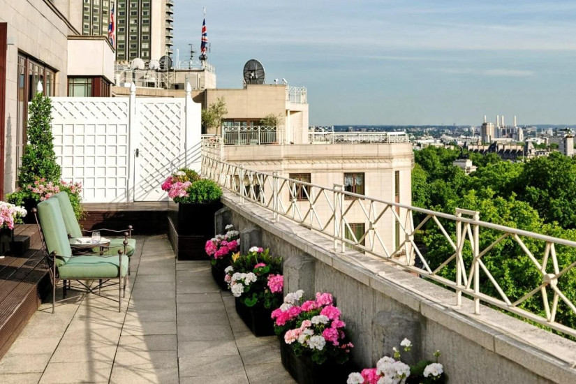 - 123 м2. Шикарный номер состоит из спальни с кроватью king-size, гостиной с камином, столовой, большой гардеробной, ванной комнаты с ванной, оснащенной функцией хромотерапии, и панорамным окном, гостевой туалетной комнаты, просторной, опоясывающей номер террасы с зоной отдыха и панорамным видом на Лондон. Номер расположен на верхнем этаже. Гостям номера предоставляются услуги дворецкого.