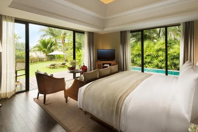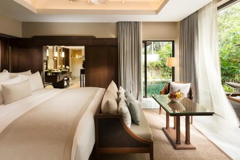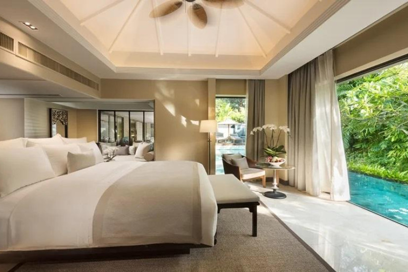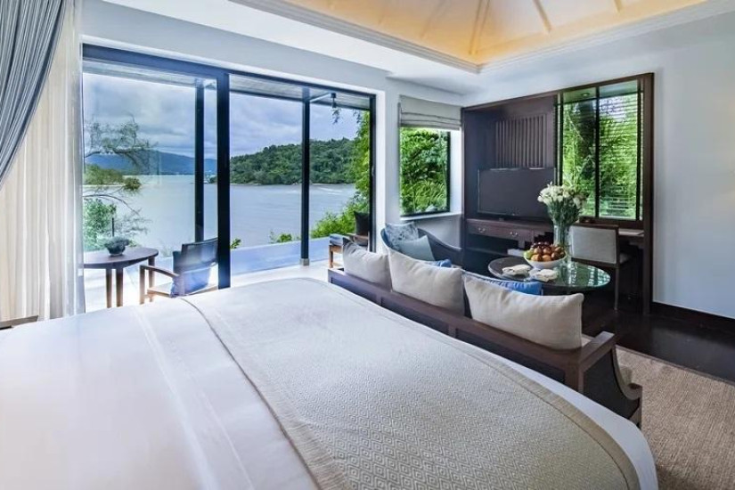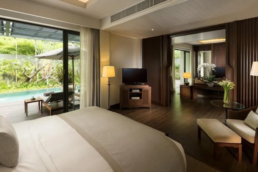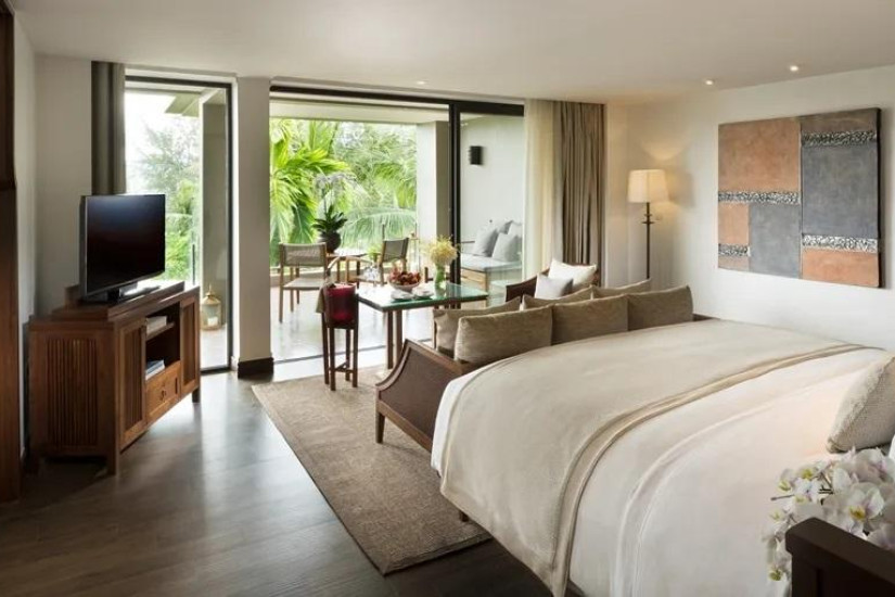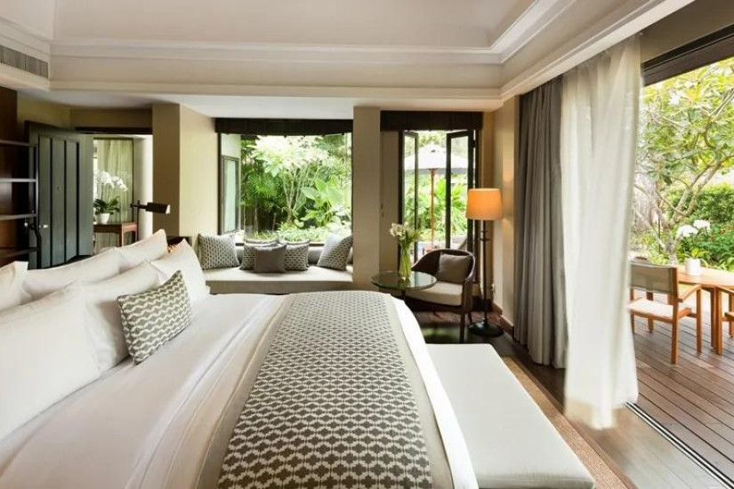 - Отель располагает номерами различных категорий. Просторные номера выполнены в современном азиатском стиле, обставлены элегантной мебелью и декорированы роскошным текстилем, с балконов и террас открывается великолепный вид на пышные тропические заросли и бирюзовые воды залива.