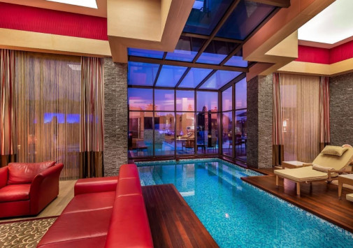 В роскошном спа-центре, включающем несколько секций, созданы все условия для релаксации: бассейн, джакузи с эффектом цветотерапии, хаммам, русская баня, гидротерапевтическая дорожка рефлексотерапии, зона отдыха с витаминным баром, спа-бутик и несколько современно оборудованных процедурно-массажных кабинетов, а также приватная зона с спа-сьютами, в которых имеется собственный бассейн, хаммам, сауна и сад. В спа-центре предложен широкий спектр разных видов массажа, косметологических и спа процедур.