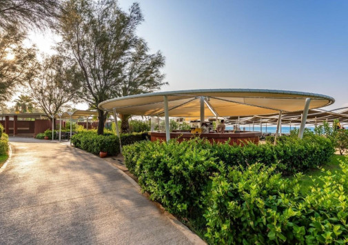 Отель расположен у частного песчаного оборудованного пляжа длиной 250 м и шириной 55 м.