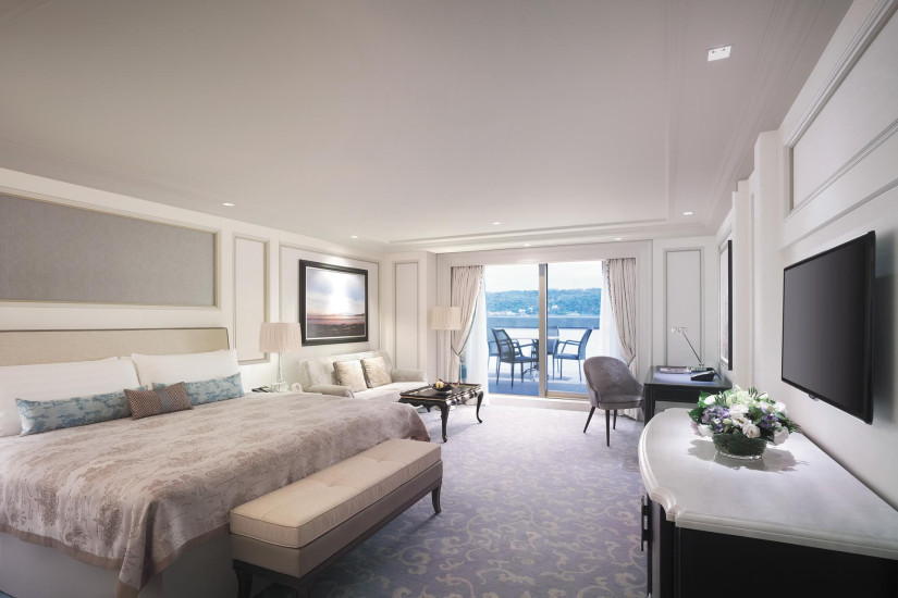 - 180 м2. Фешенебельный номер, расположенный на 6 этаже, украшен восточной живописью и изящными произведениями искусства. Состоит из спальни, гостиной, обеденной зоны, ванной комнаты с ванной и отдельным душем, гостевой ванной комнаты, двух террас – одна с видом на город, другая - на пролив Босфор.