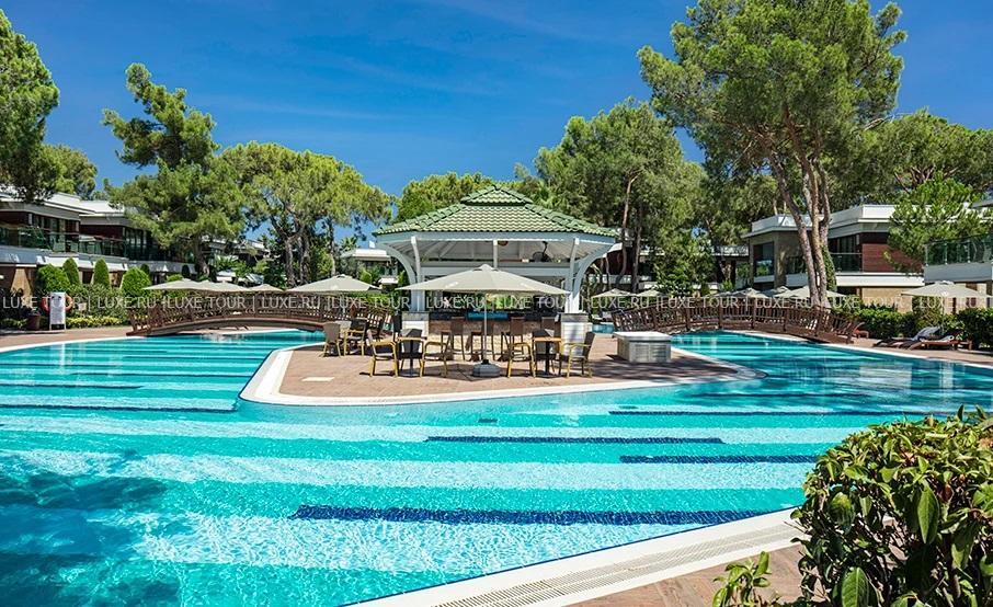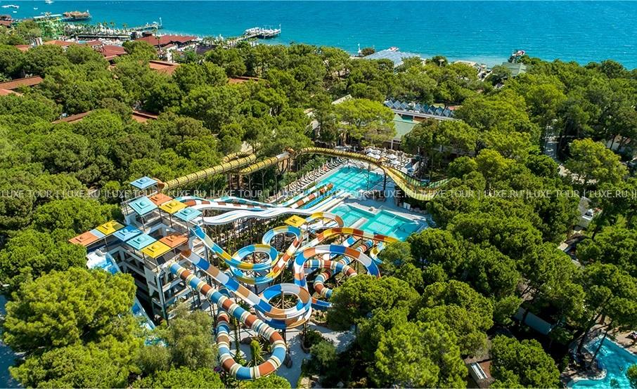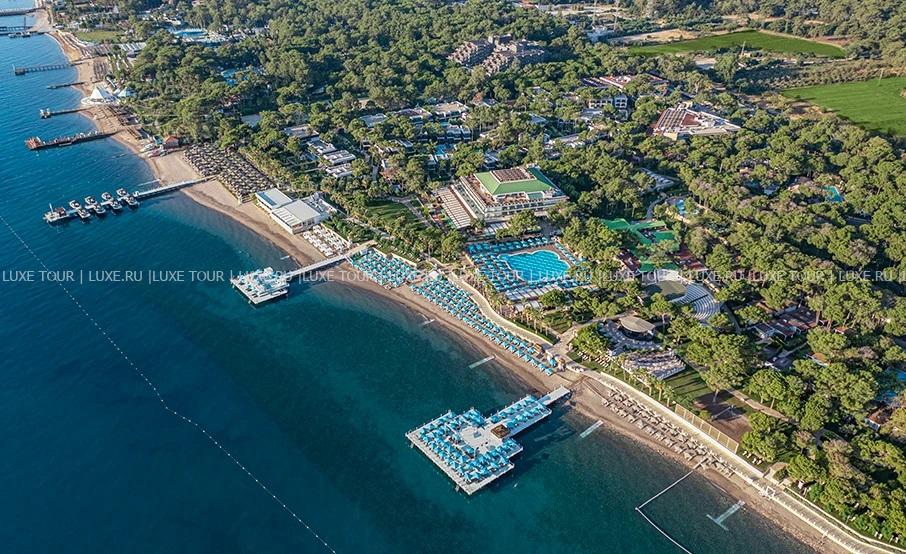 Nirvana Mediterranean Excellence раскинулся между лазурным Средиземным морем и величественными горами Таурус, у великолепного частного пляжа, протянувшегося почти на километр, среди нескольких гектаров живописного соснового бора. Домики из кедра в лесу из красной сосны создают для гостей безмятежную атмосферу Средиземноморья. Вас окружат роскошным сервисом в атмосфере умиротворения в Бельдиби. Фешенебельный комплекс впечатляет разнообразием первоклассных услуг и отличной инфраструктурой. Стильные комфортабельные номера, многочисленные рестораны, бары и кафе, способные удивить искушенных гурманов, несколько бассейнов и огромный аквапарк с водными горками, великолепный спа-центр, клубы для детей и подростков и масса развлечений на любой вкус и возраст. Nirvana Mediterranean Excellence предлагает эксклюзивный отдых в сказочном средиземноморском уголке.