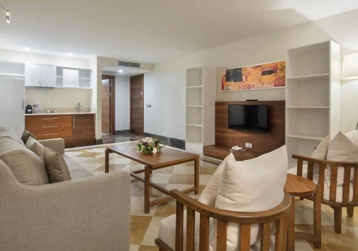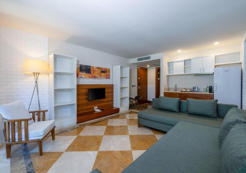 В отеле открыт мега-аквапарк с различными водными горками, несколько открытых бассейнов, включая главный бассейн с морской водой и гидромассажной зоной.