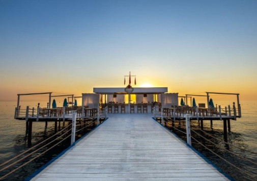 Отель располагает частным песчано-галечным пляжем с тремя пирсами и павильонами для отдыха.