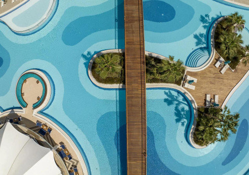 В отеле имеются комплекс открытых бассейнов, включая главный бассейн (2960 м2), подогреваемый бассейн с морской водой, бассейн для взрослых, 6 бассейнов-лагун, аквапарк с детской зоной и водными горками (в числе которых “Рафтинг” высотой 130 м, “Чёрная дыра” (125 м), “Бади” (73 м), “Космос” и “Свободное падение” – высотой 39 м), а также крытые подогреваемые бассейны в Spa и фитнес-центрах.