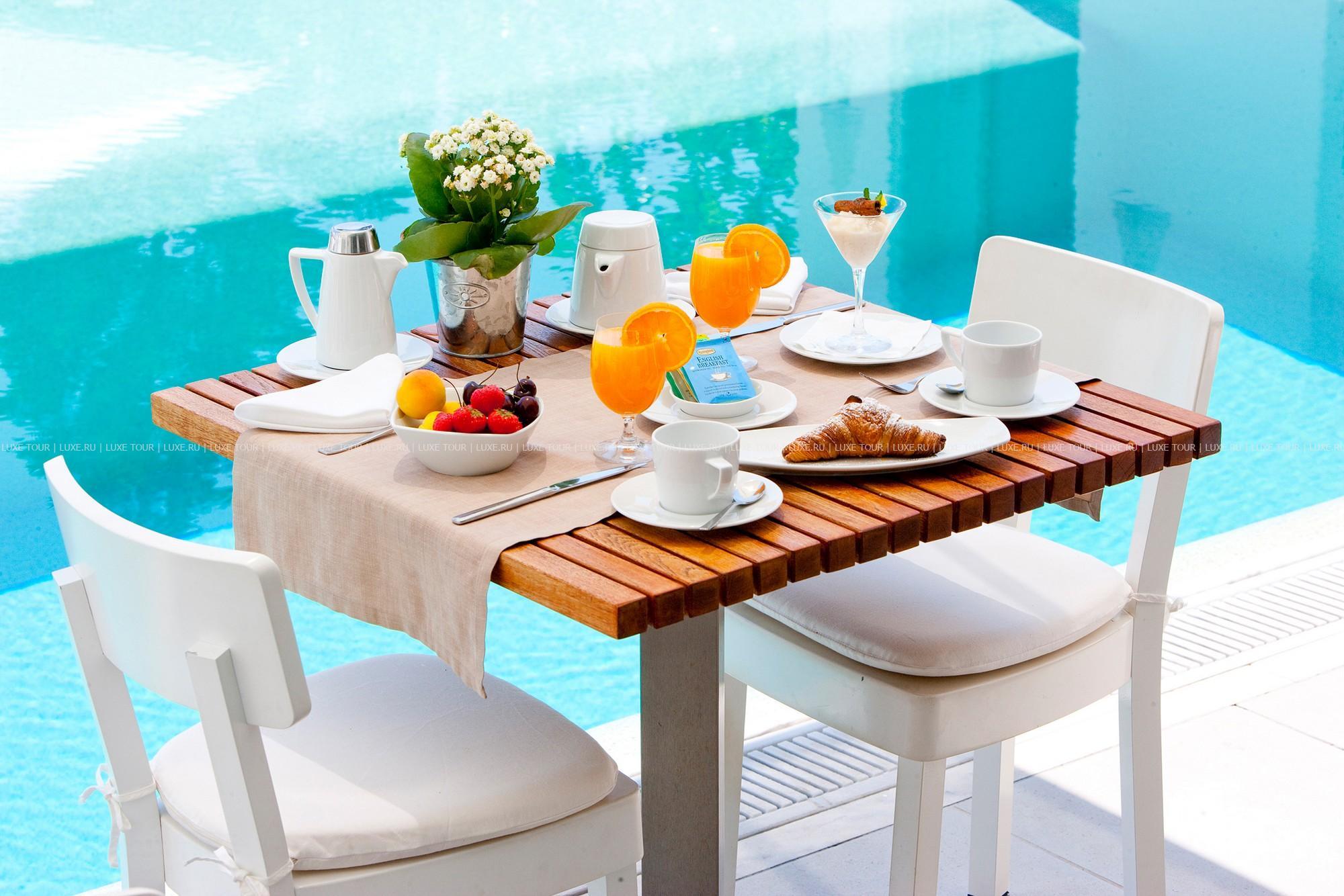 Элегантный ресторан, выполненный в морском стиле и расположенный у бассейна, предлагает изысканные блюда средиземноморской и греческой кухни.