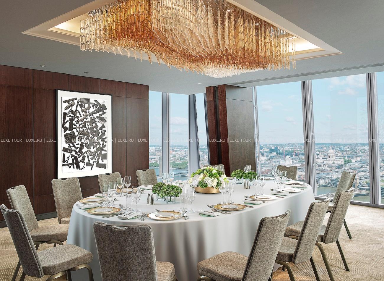 В распоряжении отеля Shangri-La Hotel, At The Shard, London имеется целый этаж с ошеломительным видом на город, предназначенный для проведения встреч и мероприятий. Уникальное функциональное пространство на 34 этаже состоит из трех ультрасовременных прекрасно оборудованных залов общей вместительностью 170 мест.