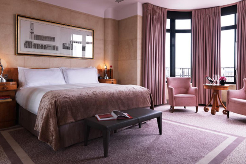 - 267 м2. Шикарный номер, расположенный на последнем этаже, выдержан в бледно-лиловых тонах, декорирован дубовыми полами и живописью «тромплей», оформлен известной дизайнерской компанией Veere Grenney в стиле ар-деко, навеянным 1930 годами. Состоит их холла, двух спален с кроватями king-size, двух ванных комнат, бара, просторной гостиной с камином, обеденной зоны, вместительной гардеробной с двумя шкафами, большой меблированной террасы с захватывающим панорамным видом на Лондон. Максимальное размещение - 4 человека. Возможно соединение номеров. Гостям номера предоставляются услуги дворецкого, бесплатный трансфер из аэропорта Хитроу на автомобиле представительского класса.