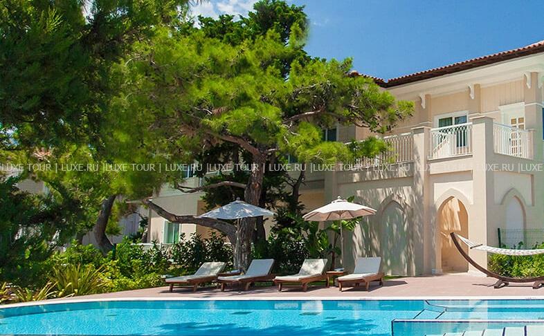 Отель располагает 440-метровым песчано-галечным пляжем, отмеченный Голубым флагом.