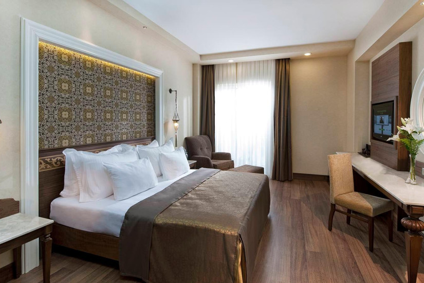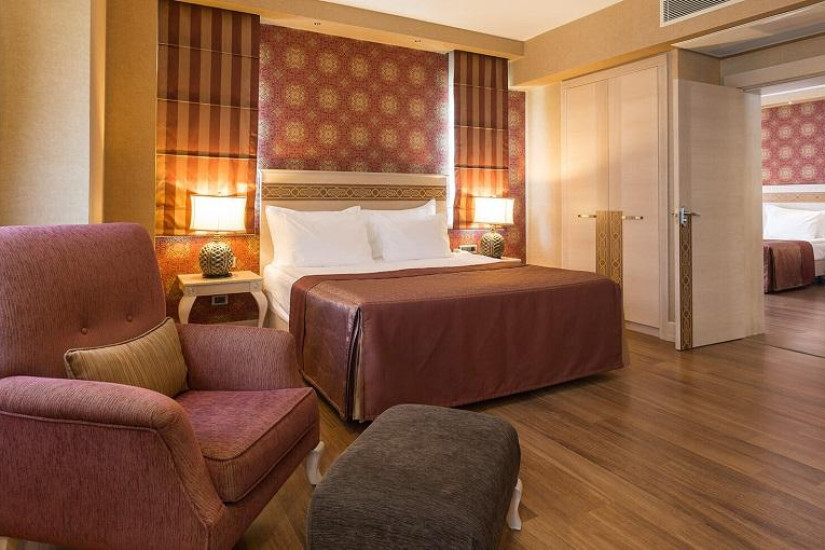 - В отеле номера различных категорий. Просторные номера впечатляют роскошными интерьерами в современном турецком стиле и высоким уровнем комфорта.