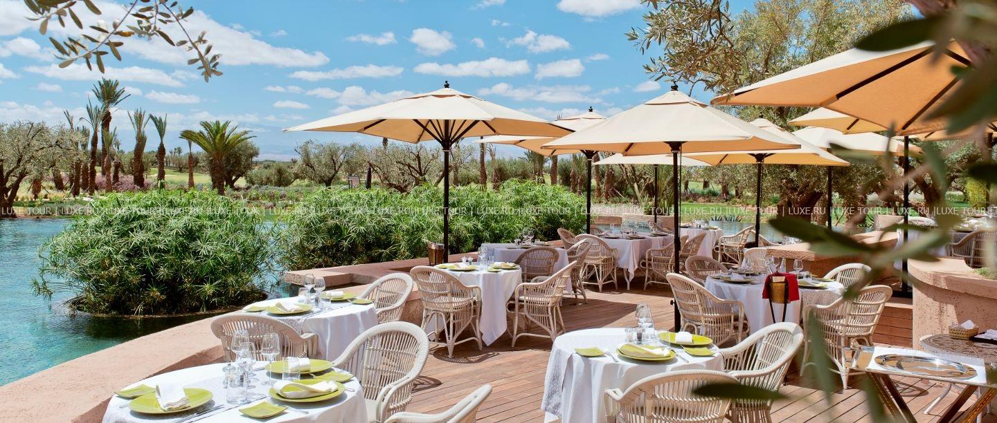 • Уютный ресторан Le Sabra с открытой террасой и видом на гольф-поле и Атласские горы предлагает широкий выбор легких сезонных блюд.