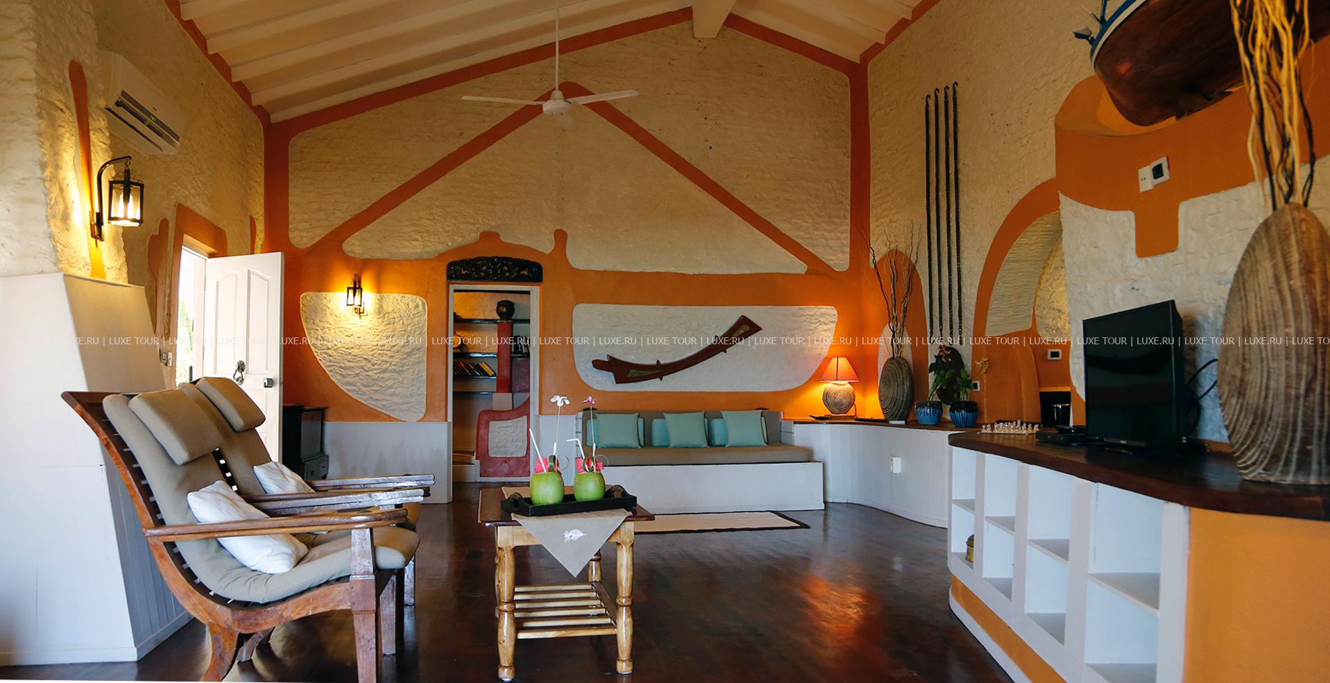 • Ресторан отеля подает блюда итальянской, международной и традиционной местной кухни. В винном погребе представлено более 100 сортов вина. Гости так же могут организовать романтический ужин при свечах как на частном пляже виллы, так и на ближайшем пустынном острове.