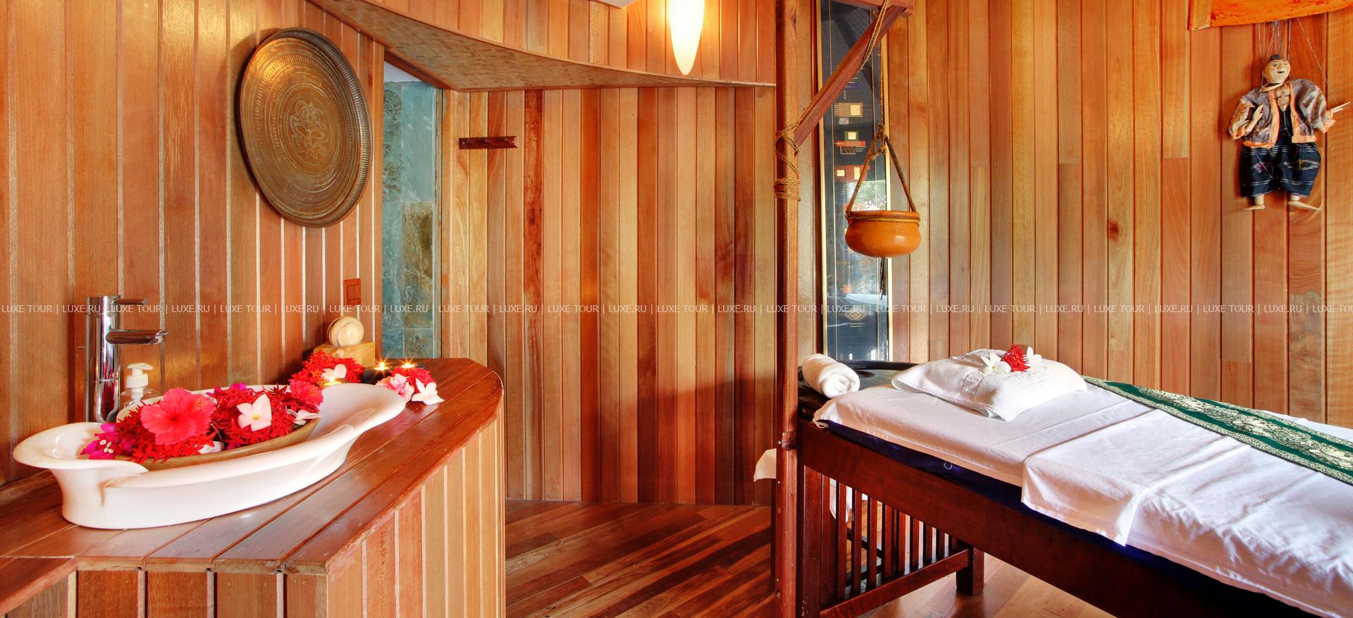 Отель располагает спа центром Lotus Nuka Spa, который представляет собой оазис неги и блаженства, отлично гармонирующий с природой и тропическим пейзажем острова. В искусственной лагуне с цветущими водяными лилиями находятся 8 плавучих бунгало, носящих названия достопримечательностей Венеции. Каждое из них специализируется в определенном направлении: аюрведа, восточные практики, массаж, сауна, салон красоты и т.д.