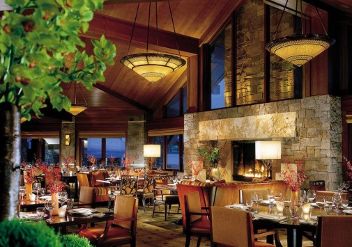 Westbank Grill — элегантный гриль-ресторан с камином и прекрасным видом на горы.