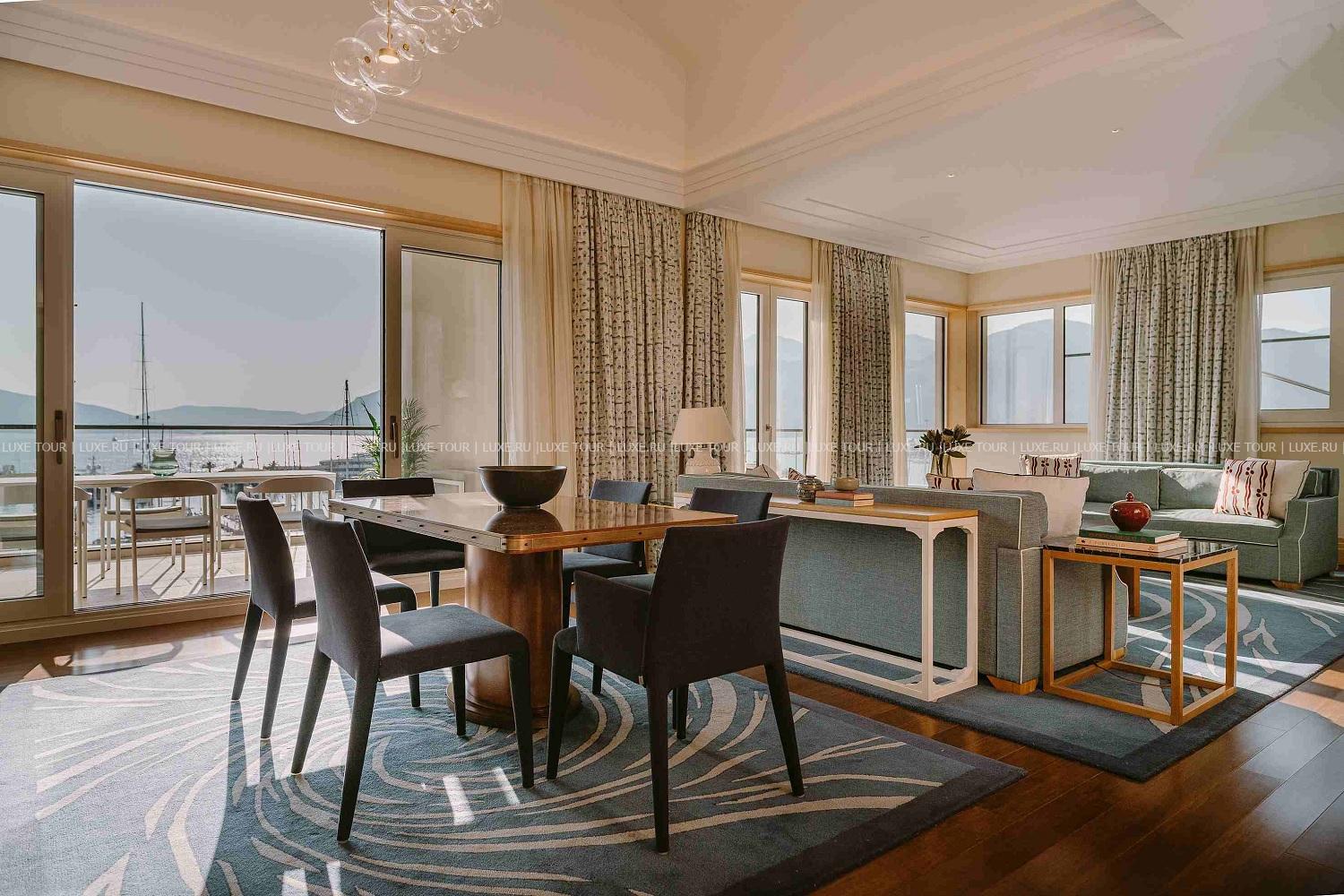 Regent Porto Montenegro находится в яхтенной гавани Porto Montenegro, на берегу сказочно красивого Которского залива. Фешенебельный отель состоит из трех корпусов, интерьеры которых оформлены в разных стилях, а с балконов и террас шикарных номеров открывается вид на сверкающий залив, марину с белоснежными яхтами и поросшие лесами горы. Помимо первоклассного размещения гостей ждет весь спектр услуг самого высокого уровня – от изысканной кухни и великолепного Spa-центра до комплекса бассейнов и вместительных залов для всевозможных мероприятий. Regent Porto Montenegro предлагает эксклюзивный отдых на престижном черногорском курорте.