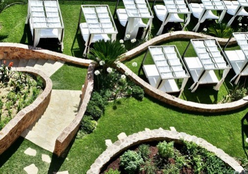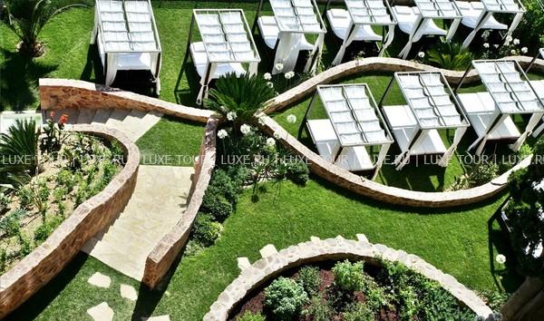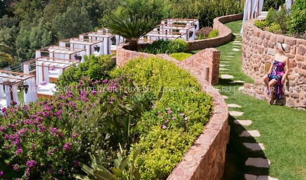 - На живописных зеленых террасах отеля приятно отдохнуть за бокалом вина или коктейля.