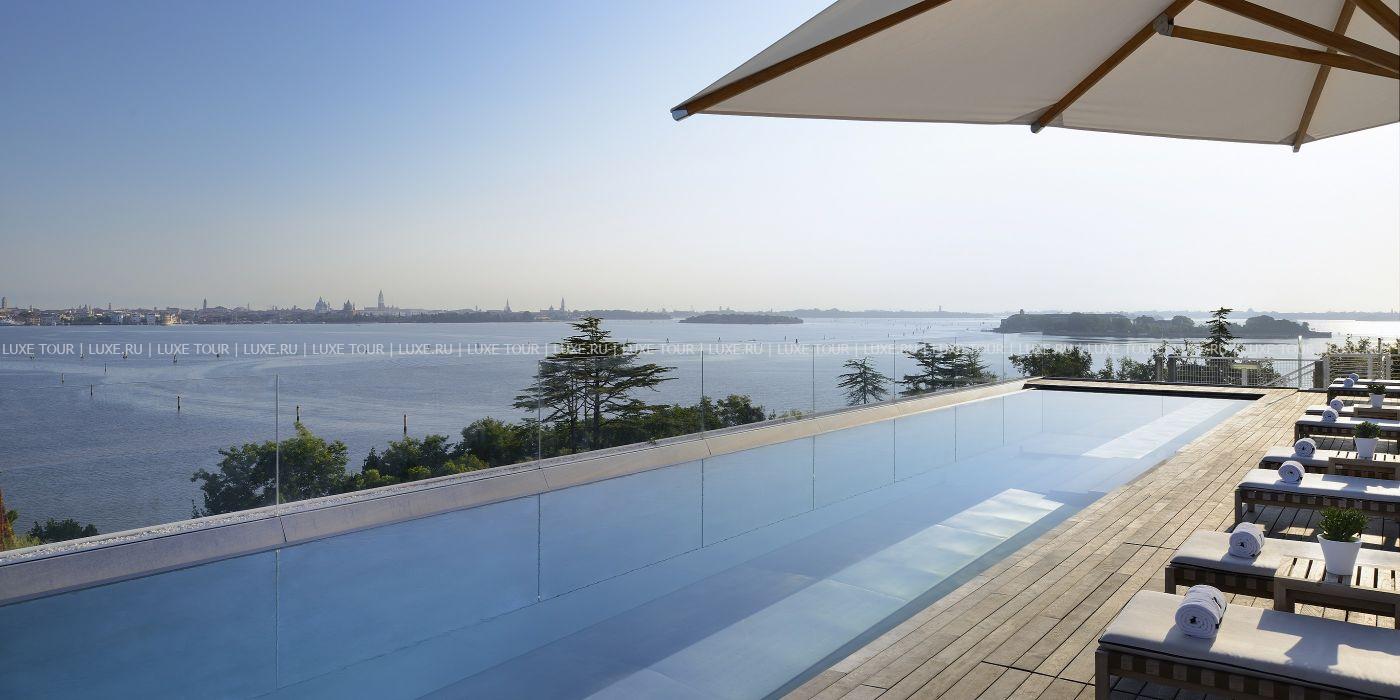 Sagras – бар у бассейна, в котором можно перекусить и отдохнуть за освежающим коктейлем, любуясь 360-граудсным панорамным видом на лагуну и Венецию.