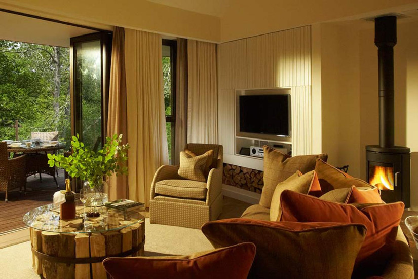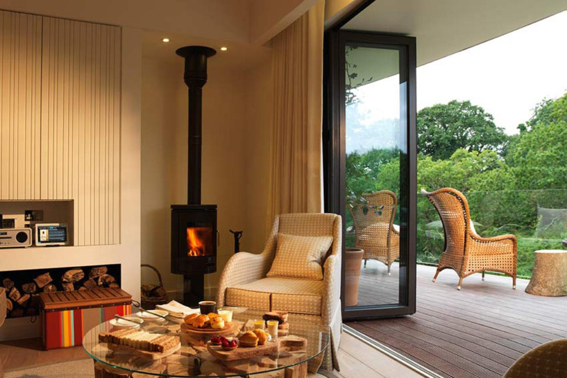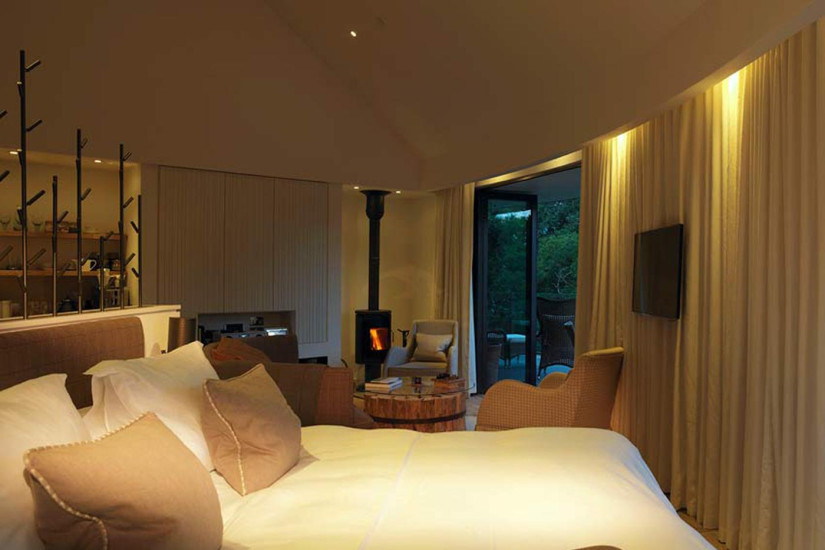 - 61 м2. Состоит из спальни с кроватью king-size, гостиной с дровяной печью, обеденной зоны, мини-кухни, ванной комнаты с ванной и отдельным душем, гардеробной, просторной террасы с зоной отдыха, открытой гидромассажной ванной с панорамным видом на парк. Максимальное размещение – 2 человека.