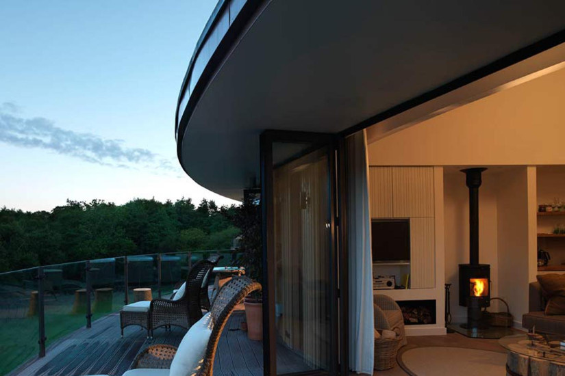 - 86 м2. Состоит из спальни с кроватью king-size, застекленной галереи-перехода, гостиной с дровяной печью, обеденной зоны, мини-кухни, ванной комнаты с ванной и отдельным душем, дополнительной туалетной комнаты, гардеробной, просторной террасы с зоной отдыха, открытой гидромассажной ванной с панорамным видом на парк. Максимальное размещение — 3 человека.