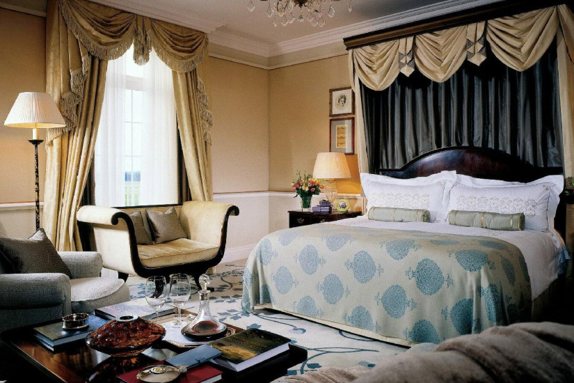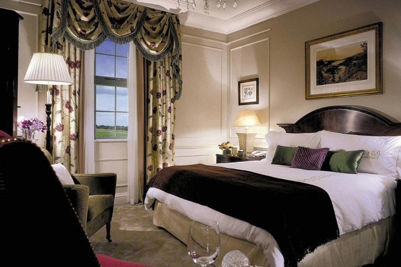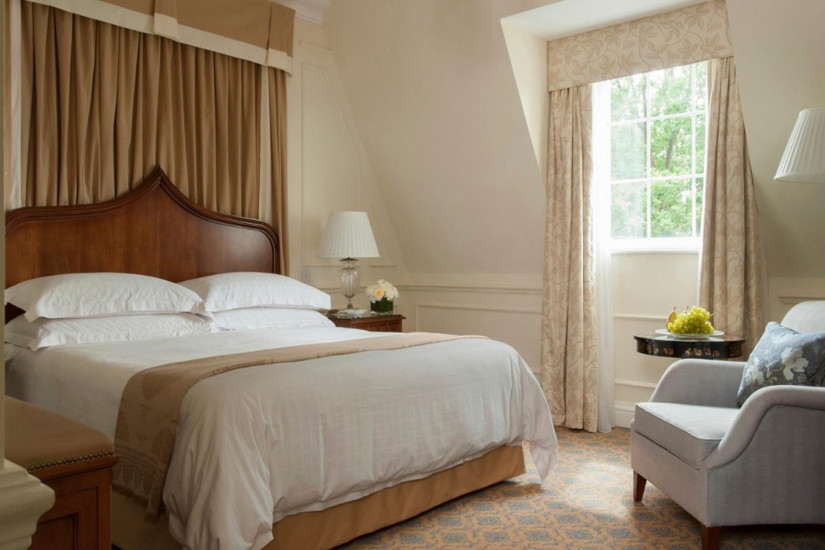 - 45 м2. Расположен в восточном или западном крыле отеля, состоит из спальни с кроватью king-size или двумя кроватями twin, зоны отдыха или рабочей зоны, ванной комнаты. Вид на окрестности поместья. Максимальное размещение – 3 взрослых или 2 взрослых + 1 ребенок.