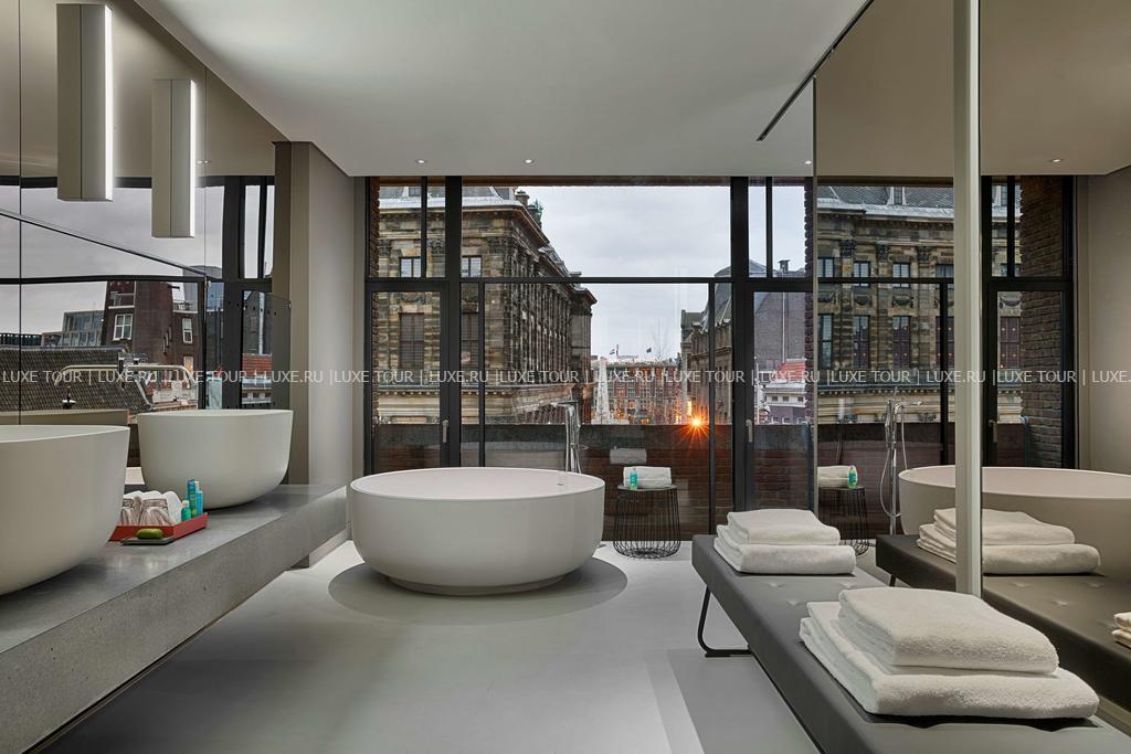 В самом сердце Амстердама, в нескольких шагах от живописных каналов, музеев и площади Дам расположен W Amsterdam. Фешенебельный отель занимает два исторических здания – бывшего амстердамского банка и телефонной станции – за стенами которых гостей ждут шикарные дизайнерские интерьеры и первоклассный сервис. Отель предлагает элегантные комфортабельные номера с видом на старинный город и средневековый канал Сингел, роскошный гастрономический ресторан, воссоздающий атмосферу «Прекрасной Эпохи», и стильный бар с панорамным видом на Амстердам, СПА и фитнес-центры, современно оснащенные конференц-залы и множество других услуг в концепции W-отелей «Что угодно/когда угодно». W Amsterdam сочетает очарование старинного Амстердама и комфорт XXI века.
