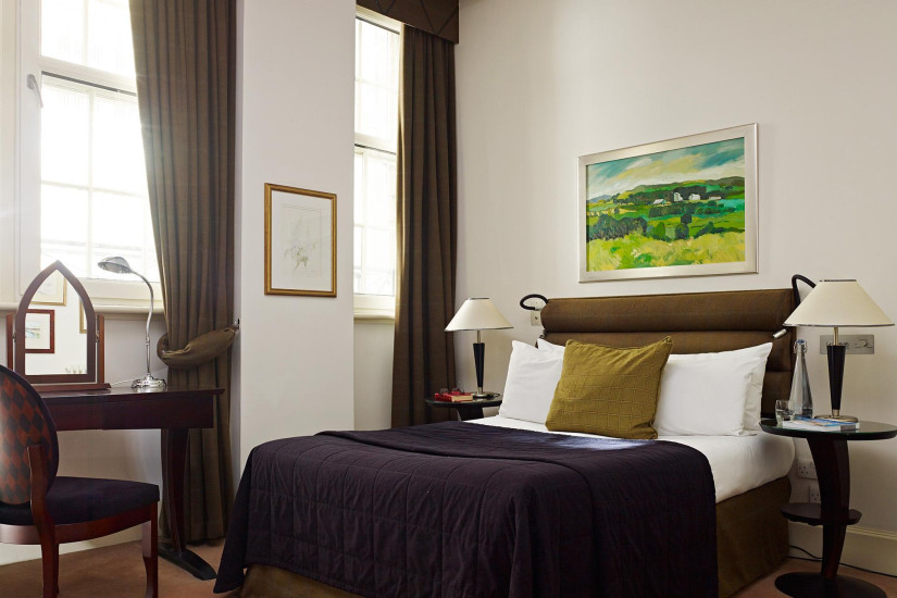 - Всего в отеле 105 номеров различных категорий, включая Study Room, Deluxe Room, 12 Editors Room, Publishers Suite, Baron Suite и Penthouse Suite. Элегантные интерьеры оформлены в классическом стиле, воссоздающем атмосферу начала XX века: теплые насыщенные тона, эркеры, занавешенные тяжелыми драпированными шторами, отделка деревянными панелями, мягкое ковровое покрытие на полах и изысканная живопись на стенах — гармоничный ансамбль очаровывает постояльцев, дополняя продуманный стиль гостиницы.