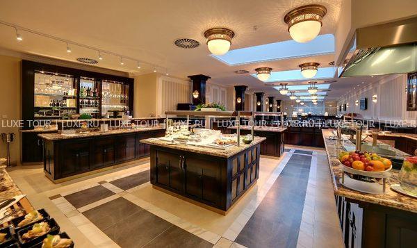 • Ресторан Amadeus с элегантным декором и стеклянными нишами в потолке предлагает разнообразие изысканных блюд, представленных в меню и на «шведском столе». В теплое время года работает живописная летняя терраса.