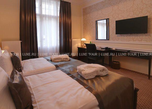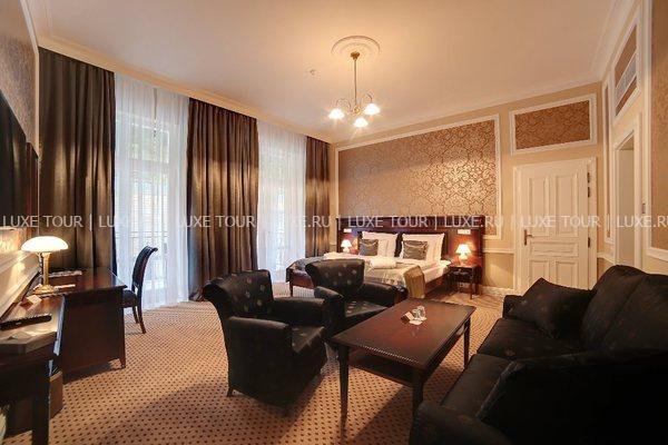 Великолепное, бережно отреставрированное здание Olympic Palace Карловы Вары расположено на Замковой горе, в тихом уголке рядом с центром курорта. Здание было перестроено в 1910 году по проекту архитектора Отто Штайнла, а история фешенебельного отеля восходит к 1860 году. Сегодня здесь сохранены изысканная атмосфера и роскошные интерьеры в стиле ар-нуво: отделка из ценных пород мрамора и дерева, изумительная лепнина и дорогой текстиль, элегантная мебель и со вкусом подобранные произведения искусства. К услугам гостей шикарные номера, ресторан с богатым декором и отменной кухней, стильный лаундж-бар и летняя терраса. И, конечно, первоклассный бальнеологический/СПА-центр, в котором есть все для лечения, оздоровления и релаксации – от подведенной в него воды из источников Каловых Вар, бассейна, саун и соляного грота до широкого разнообразия курортных и спа-процедур. Olympic Palace Карловы Вары сочетает очарование старины и самые высокие стандарты современного сервиса.