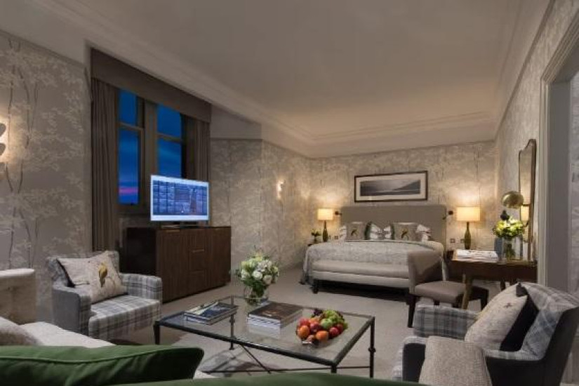 - В отеле комфортабельные номера различных категорий. Элегантные интерьеры номеров сочетают стильный современный декор и шотландские традиции.