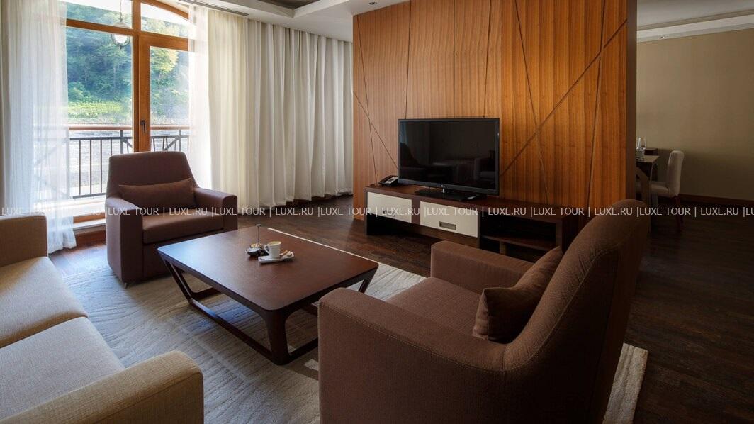 Основной ресторан The River с элегантным интерьером и видом на горную реку. Предлагает гостям великолепный завтрак в формате «шведский стол», а также блюда Русской и Кавказской кухни в течение дня.