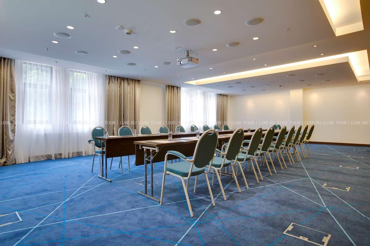 Для гостей – 12 залов для деловых и торжественных мероприятий площадью от 30 м2 до 340 м2, включая многофункциональный зал «Москва», вмещающий до 300 человек, бизнес-центр, бесплатный Wi-Fi, парковка, услуги консьержа, услуги прачечной.