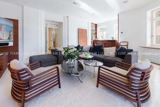 Для гостей – гостиная/переговорная комната, бесплатный Wi-Fi, две открытые террасы, сад, частный причал, парковка, лимузин-сервис, аренда катера, персональные услуги консьержа, повара и дворецкого, услуги прачечной и химчистки.