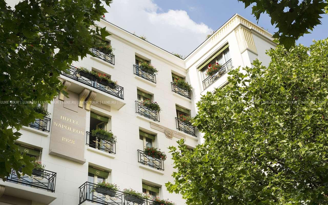 В двух шагах от Елисейских полей, на знаменитой авеню Фридланд в престижном 8-ом округе находится Napoleon Париж. История этого фешенебельного отеля романтична и необычна. В 1920-х годах состоятельный русский инженер и предприниматель Александр Павлович Клягин встретил на литературной ярмарке юную парижанку, влюбился в нее с первого взгляда, и в качестве свадебного подарка преподнес невесте отель, который по сей день принадлежит семье Клягиных. За годы истории гостями отеля были Жан Гобен, Жозефина Бейкер, Эррол Флинн и многие другие знаменитости. Роскошная атмосфера парижского аристократического дома царит во всем отеле и сегодня – от шикарных номеров и изысканного ресторана до элегантных конференц-залов. К услугам гостей также фитнес-зал, СПА-салон и другие современные удобства. Napoleon Париж сочетает очарование старины, первоклассный сервис и прекрасное расположение.