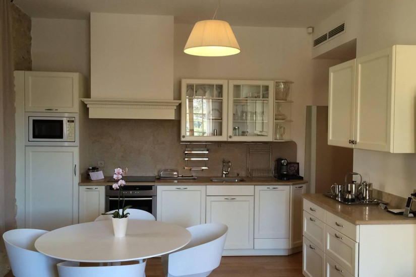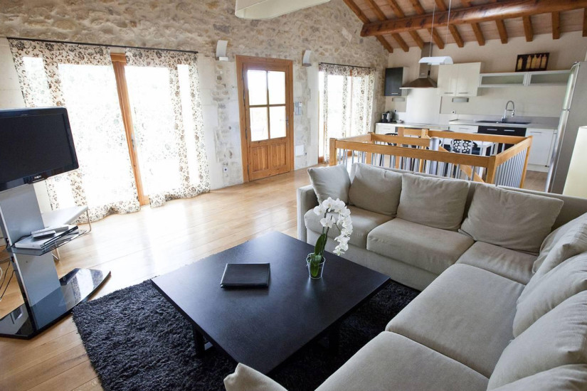 - 60-90 м2. Состоит из спальни с кроватью king-size, гостиной с диваном, полностью оборудованной кухни с обеденной зоной, ванной комнаты со спа-ванной, отдельным душем и двухсекционной раковиной, террасы с видом на сад или виноградники. Дополнительно в номере – стиральная машина. Максимальное размещение – 4 человека.