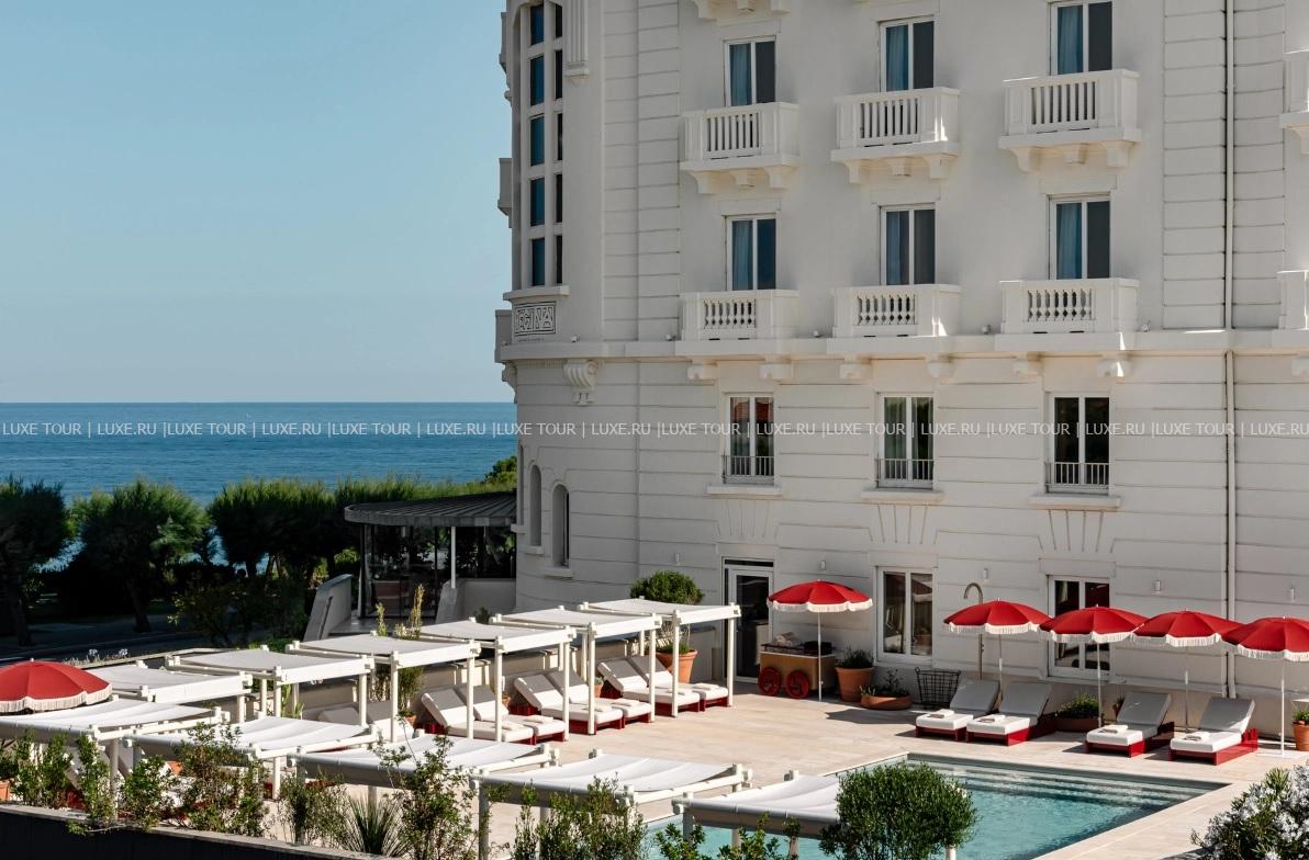 На живописном утесе, возвышающемся над широкой полосой пляжа и искрящейся бирюзой Атлантического океана, стоит великолепный дворец Regina Experimental Biarritz, построенный в 1907 году в стиле Прекрасной эпохи по проекту архитектора Анри Мартине. Дизайнер Доротея Мейлихзон обновила декор исторического отеля, бережно сохранив архитектурное наследие и изящные детали ар-деко. Центральное место занимает впечатляющий 15-метровый атриум со стеклянной крышей, как в Эйфелевой башне, и огромными эркерами с видом на океан – сегодня здесь разместился элегантный пиано-бар с уединенными уголками, удобными диванами и плетеными тотемными скульптурами. Из панорамных окон комфортабельных номеров, оригинально оформленных в яркой морской палитре, можно любоваться чарующим видом на залив и пейзажи Биаррица и изумрудное гольф-поле. Захватывающий вид на Атлантику открывается и с террасы гастрономического ресторана Frenchie, представляющего традиционную баскскую кухню в интерпретации знаменитого шеф-повара Грегори Маршана. Помимо этого, гостям предлагается огромный выбор возможностей для отдыха – от лазурного бассейна, Spa и фитнес-центров до серфинга, дайвинга, гольфа, морских прогулок и увлекательных экскурсий по Стране Басков. Regina Experimental Biarritz – роскошный отель и историко-архитектурная достопримечательность Биаррица.