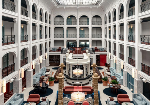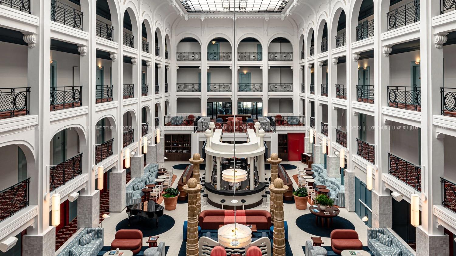 - Элегантный бар, разместившийся под высоким куполом атриума в стиле Прекрасной эпохи, предлагает широкий выбор классических и авторских коктейлей, меню деликатесных закусок, а вечером – живую музыку.