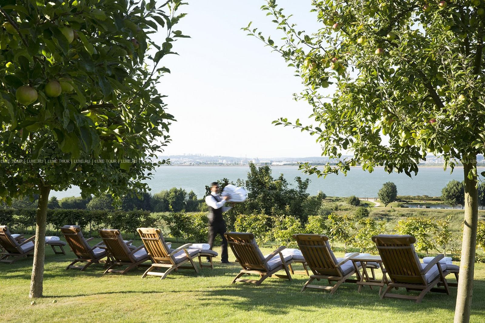 La Ferme Saint Simeon Онфлер, расположенный на живописном холме с прекрасным видом на устье Сены, запечатлен на известной картине Клода Моне «Телега на заснеженной дороге и ферма Сен-Симон». Моне, как и другой знаменитый художник-импрессионист Жан-Батист Коро, проживали и творили в этом отеле в XIX веке. Сегодня небольшой отель, разместившийся среди дивного сада, в типичном нормандском здании XVII века, бережно хранит традиции и предлагает своим гостям атмосферу роскоши и уюта. Элегантные комфортабельные номера, воссоздающие старинные интерьеры, и «мишленовский» ресторан, предлагающий изысканные блюда из свежайших местных продуктов, уютный бар, где можно попробовать лучшие сорта кальвадоса и послушать живую музыку, и эксклюзивные процедуры в современном СПА-центре. La Ferme Saint Simeon Онфлер – уникальный отель, знакомящий с историей и традициями «колыбели импрессионистов».