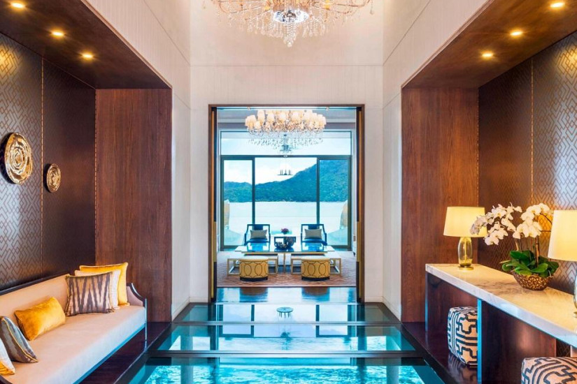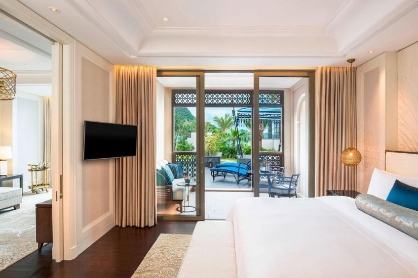- 170-262 м2. Роскошный номер, расположенный в главной башне, состоит из спальни с кроватью king-size, украшенной деревянными стойками, гостиной с диванами и обеденной зоной, большой ванной комнаты с ванной, «ливневым» душем и двумя раковинами, гардеробной, просторной террасы с зоной отдыха и панорамным видом на Андаманское море. Максимальное размещение – 3 человека.
