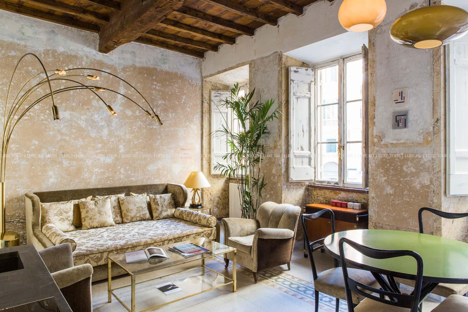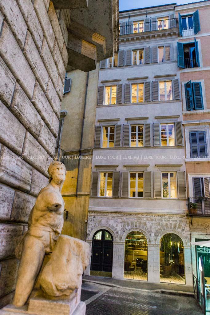 В самом сердце Вечного города, всего в нескольких шагах от Пьяцца-Навона находится отель G-Rough, разместившийся в историческом здании XVII века. «G» в названии этого небольшого, но эксклюзивного отеля обозначает начальные буквы в именах его создателей – отельеров Emanuele Garosci (Эмануэле Гарочи) и Gabriele Salini (Габриеле Салини), которые сумели соединить «историю, дизайн и немного фантазии». По словам владельцев, шикарные номера и элегантный бар отеля напоминают настоящий музей дизайна, а атмосфера и интерьеры навеяны эстетикой дизайнеров 1930-50-х годов, таких как Ико Паризи, Джо Понтии, Венини и Сегузо. Кроме того, гостям предлагается весь спектр первоклассных услуг. G-Rough сочетает авангардный дизайн и роскошь в традициях «Made in Italy».