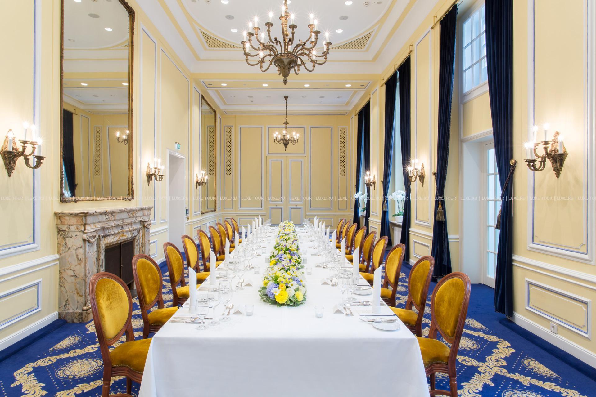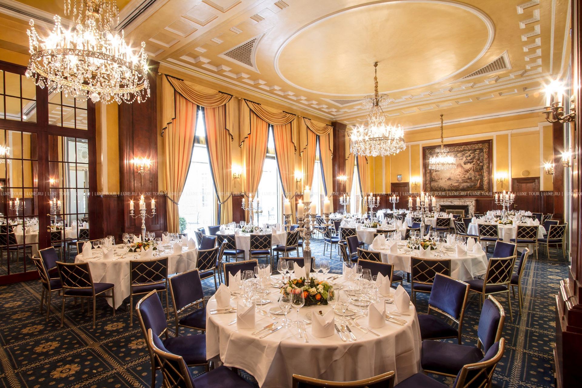 Для гостей – 12 залов для деловых и торжественных мероприятий, вмещающие до 200 человек, бизнес-центр, бутики, парковка, лимузин-сервис, услуги консьержа, услуги прачечной и химчистки.