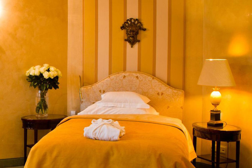 Номера в стиле Cosmopolitan R&B обставлены удобными кожаными креслами, украшены дизайнерскими лампами ручной работы из древесины венге и изумительными тканями от Мануэля Кановас. Элегантные номера Graf Pilati, как и историческая часть здания, были оформлены известным архитектором Зигвардом Графом Пилати.