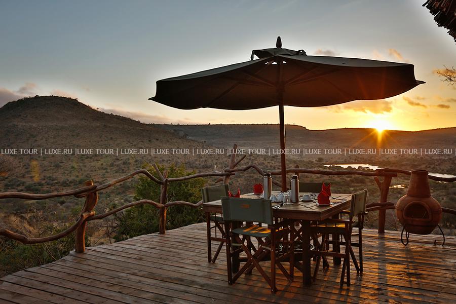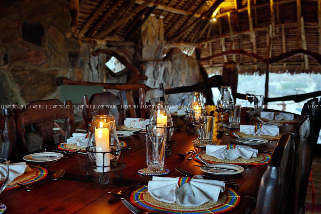 - В ресторане, расположенном под тентом на террасе с панорамным видом на заповедник, предлагаются блюда африканской, кенийской и интернациональной кухни.