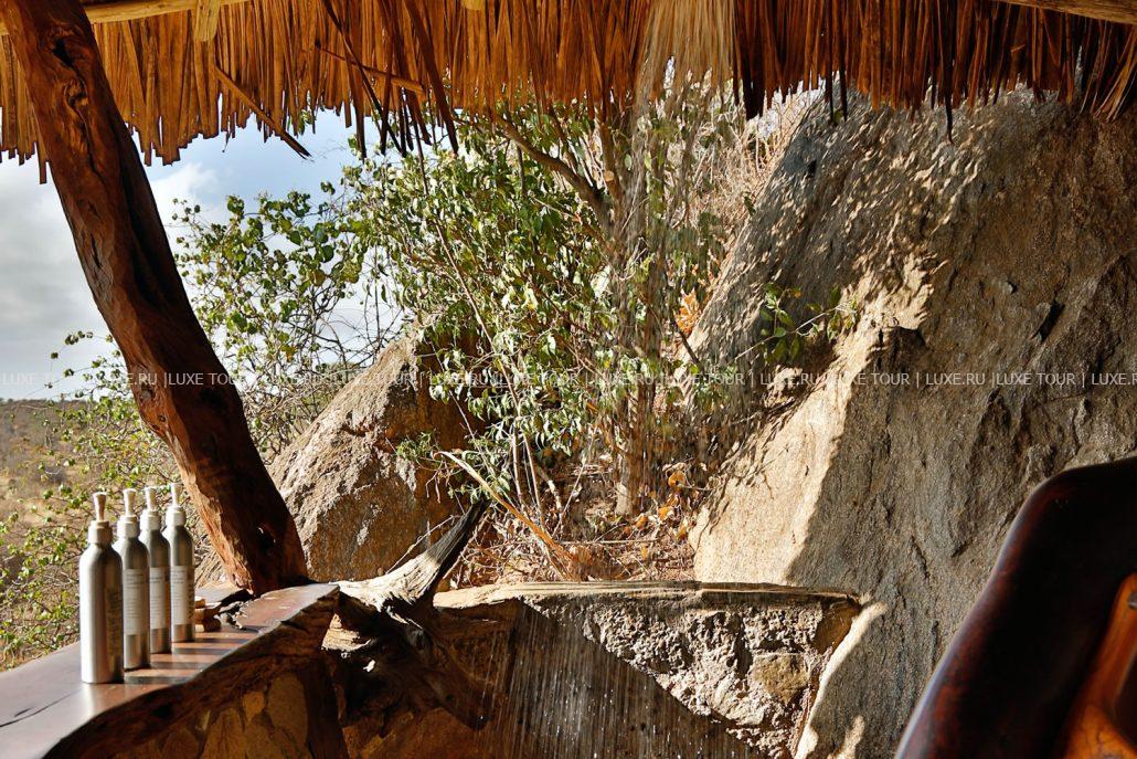 - В уютном баре приятно отдохнуть за вечерним коктейлем или бокалом вина, любуясь фантастическим видом на ландшафты Лайкикпии. Предлагается организация пикников в буше и обслуживание в номерах.