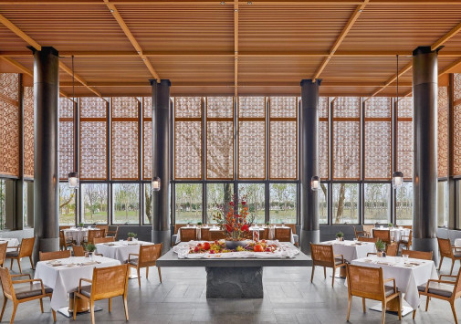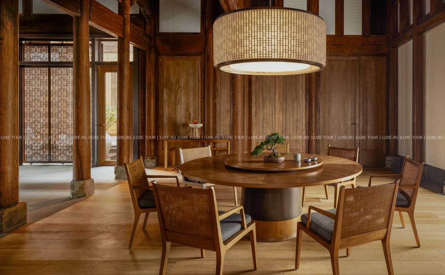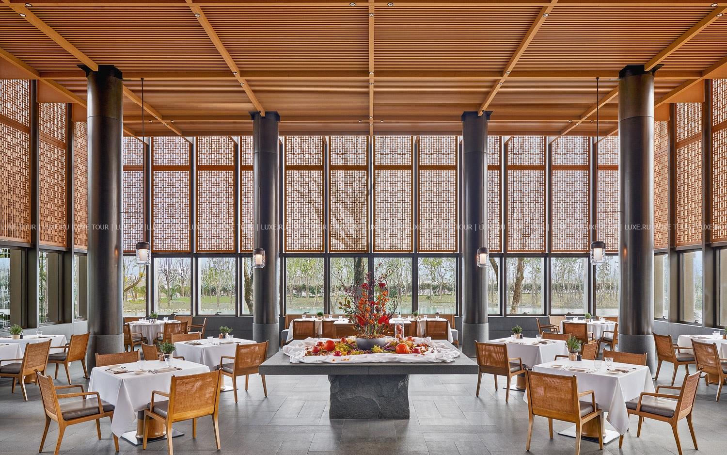 • Ресторан Lazhu с видом на живописный сад и бамбуковую рощу представляет современную интерпретацию традиционной кухни провинции Цзянси, которая славится пряными ароматами.