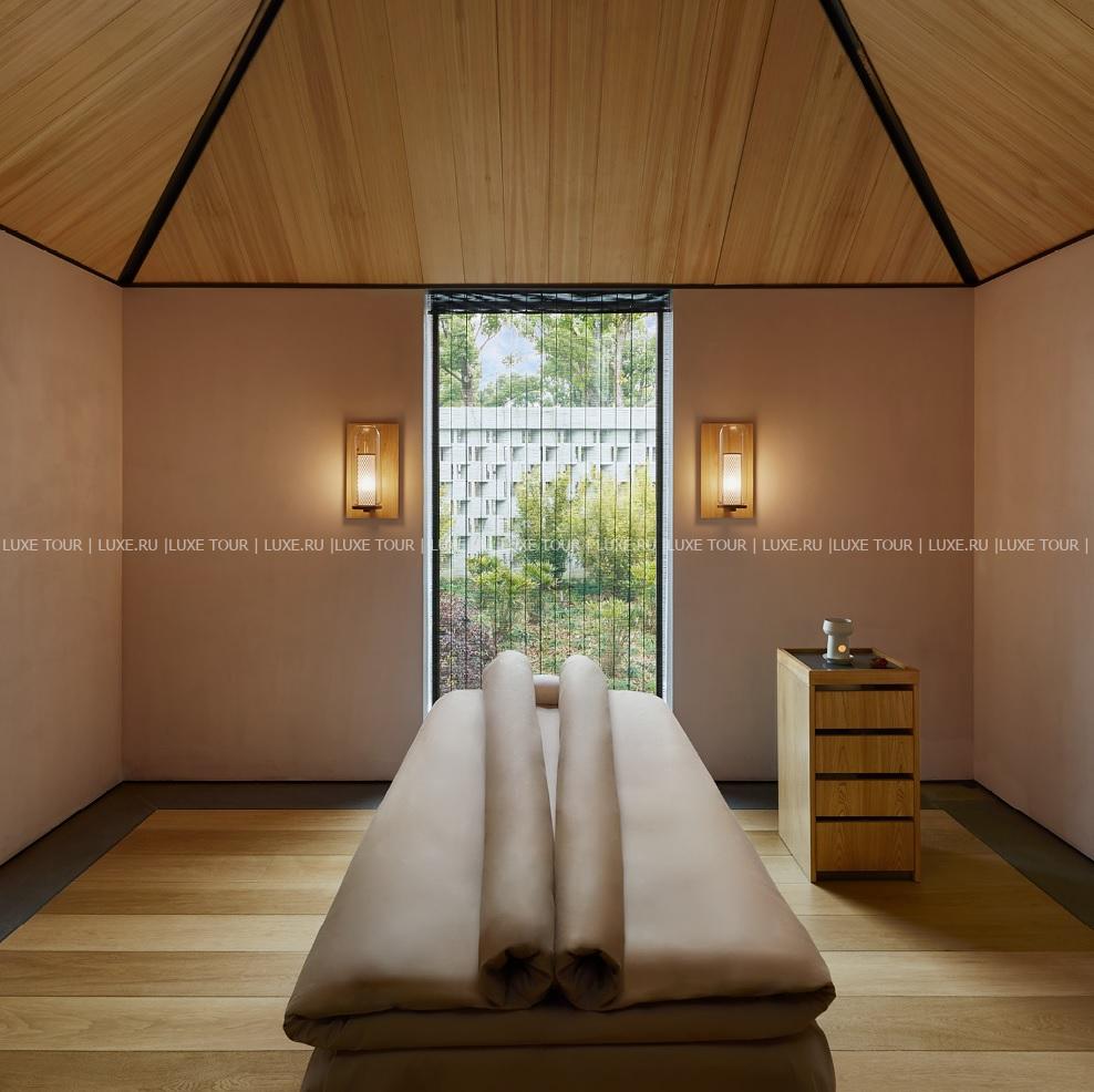 Отель располагает первоклассным центром Aman Spa площадью 2840 м2, в котором имеются: 20-метровый крытый бассейн с подогревом, 17-метровый открытый бассейн с подогревом, гидромассажная ванна, сауна, хаммам, русская баня, салон красоты, чайная гостиная, зона отдыха с массажными креслами, зона отдыха на открытой террасе и 10 процедурных кабинетов, включая 2 спа-сьюта для пар. В центре предложен широкий спектр процедур и программ по уходу за телом и лицом, основанных на традиционной китайской медицине, инновационных современных методиках, ароматерапии и использовании натуральных растительных продуктов.