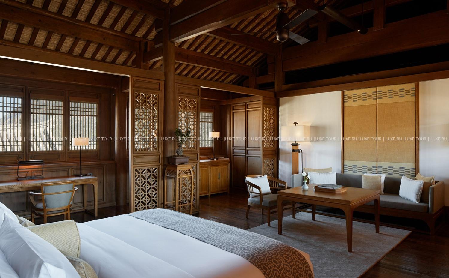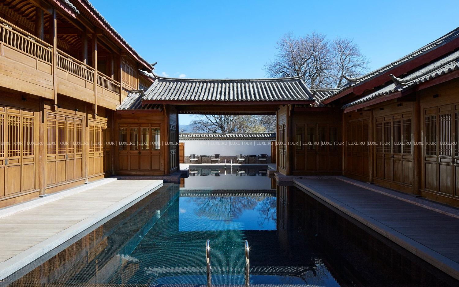Для гостей – конференц-зал на 30 мест, площади для мероприятий на открытом воздухе, смотровая площадка (600 м2) с видом на Старый город Лицзян и горы, Wi-Fi, библиотека, кинозал на 30 мест, бутик, художественная галерея, парковка, услуги консьержа, услуги прачечной.