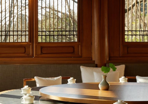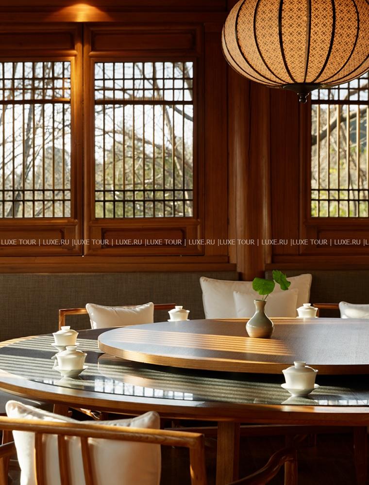 - В гостиной Tea House с открытой террасой и панорамным видом на город предложен широкий выбор китайских и западных сортов чая, десертов и выпечки, а вечером здесь можно отдохнуть за коктейлем или бокалом вина под звуки живой музыки.