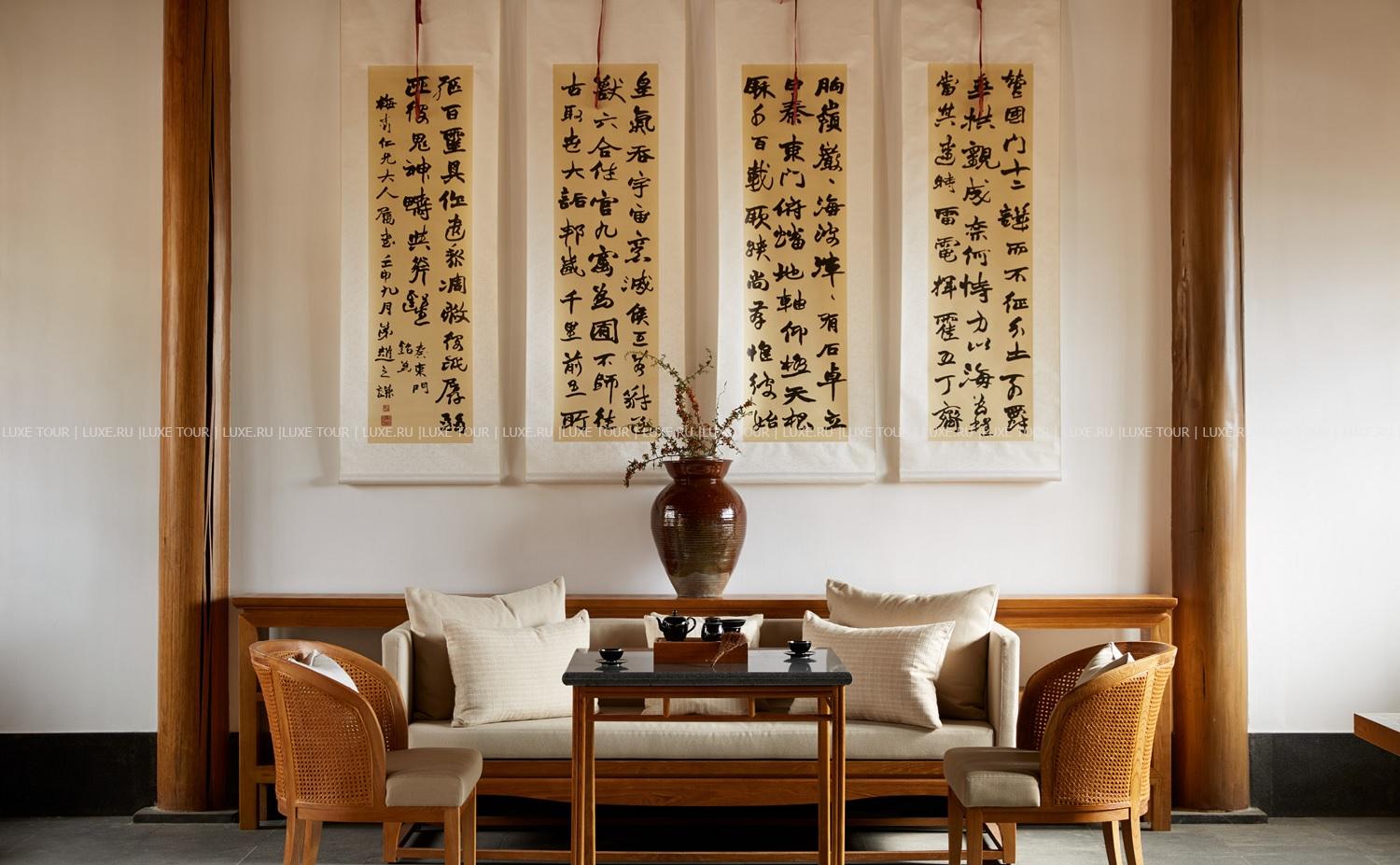 - В уютном лаундже с решетчатыми деревянными окнами подают завтрак с разнообразием блюд китайской и западной кухни.